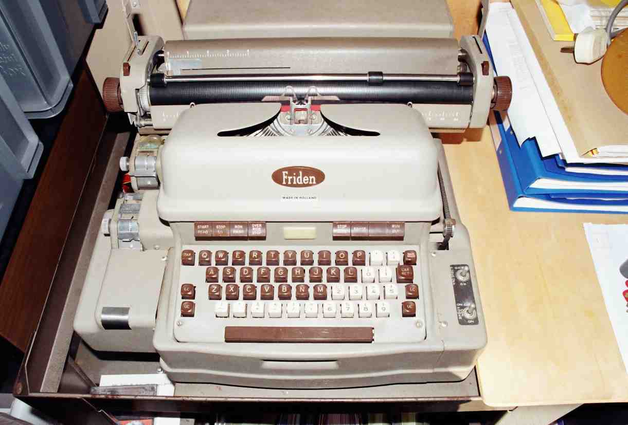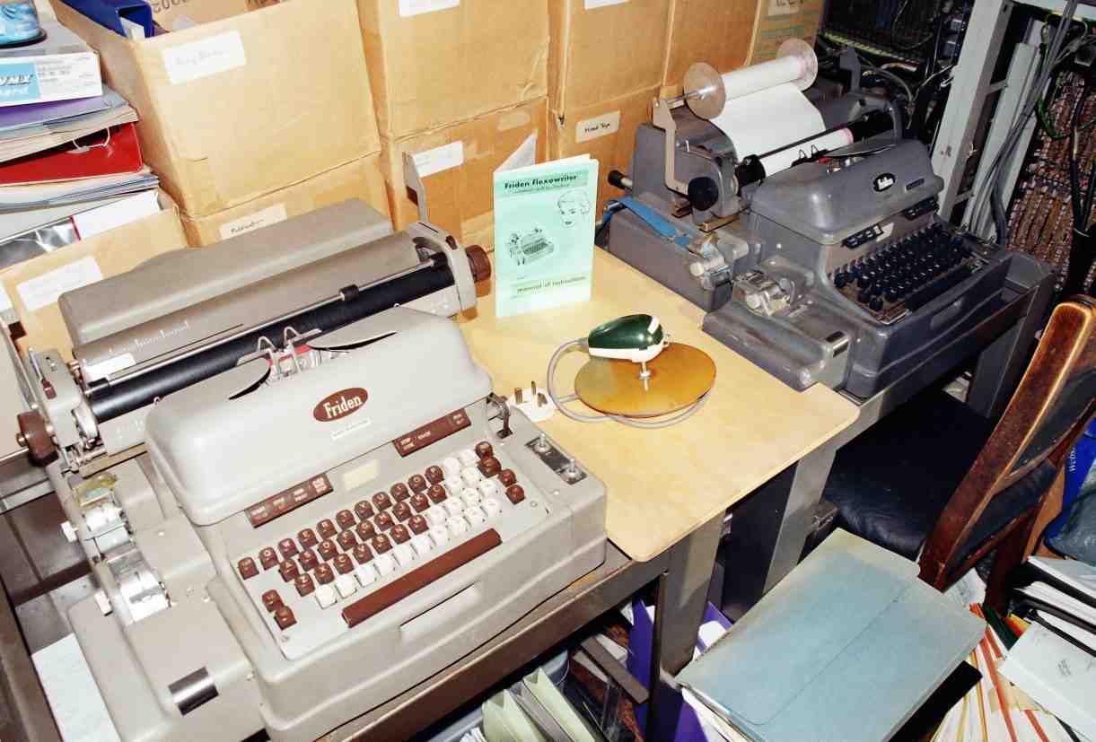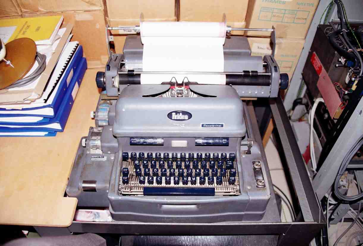 I have two Flexowriters, a grey one and a brown one, seen together from the left and right. Both use the paper-tape code described in "903/905/920 Useful Notes" as 920 (or 503) Telecode, rather than using the ASCII tape code. I did once have a third Flexowriter which I gave to Tony Sale at Bletchley Park as a spare for his rebuilt Colossus.
